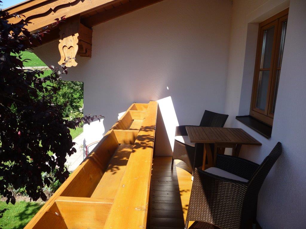Der Balkon ist mit einer Sitzgarnitur ausgestattet.